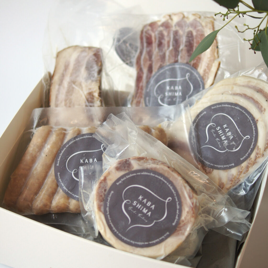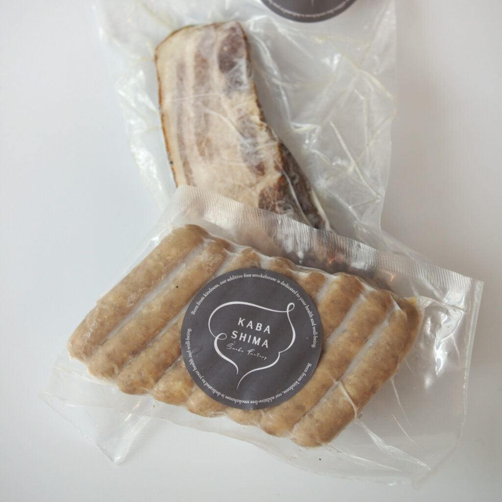 抗生物質不投与の放牧豚。 美味しい空気とお水で放牧飼育をした豚はストレスなく過ごすことで肉質が良く、豚本来の美味しさが味わえます。臭みのない甘い脂身は一番の特徴です。